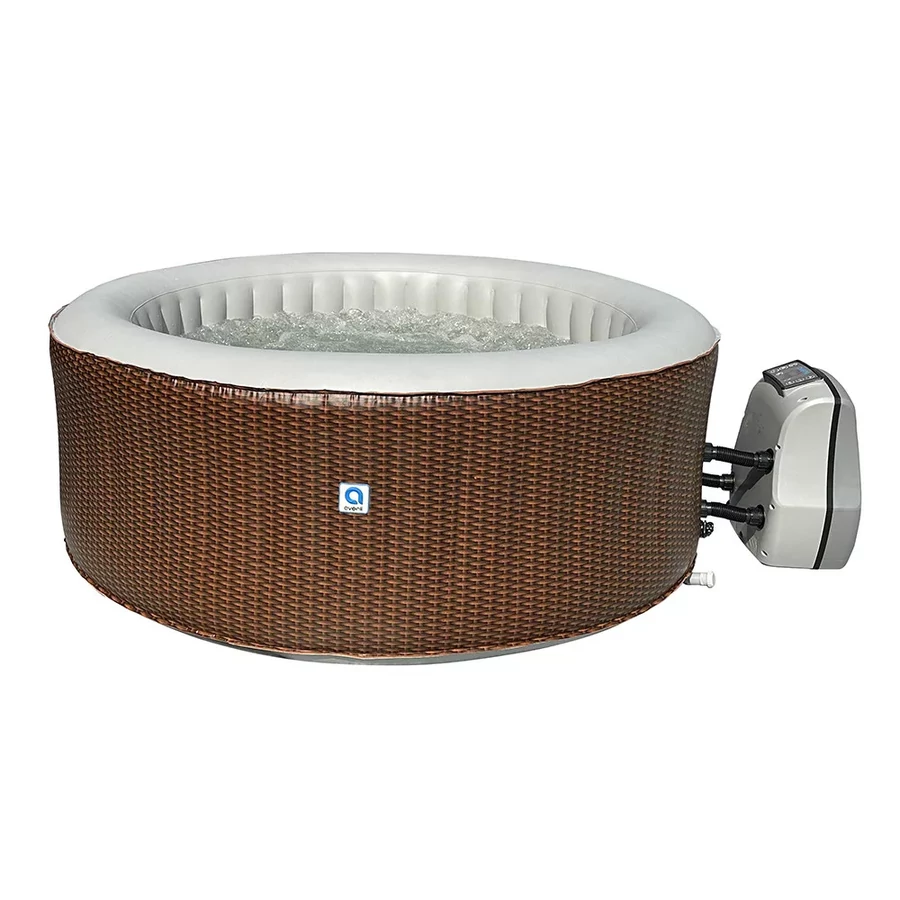 Nagyméretű felfújható jakuzzi 4-6 főre, elegáns natúr, barna rattan mintás burkolattal.