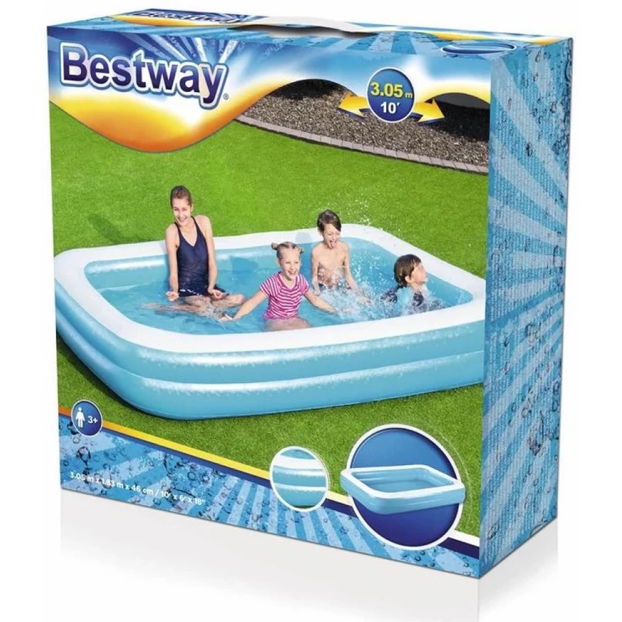 A Bestway Family felfújható kerti medence ideális választás azok számára, akik gyorsan felállítható, praktikus és családbarát kültéri medencét keresnek. A 305 × 183 × 46 cm méretű, téglalap alakú kialakításnak köszönhetően ez a kinti medence kényelmesen elfér kisebb és közepes méretű kertekben, teraszokon vagy akár nyaralók udvarán is.