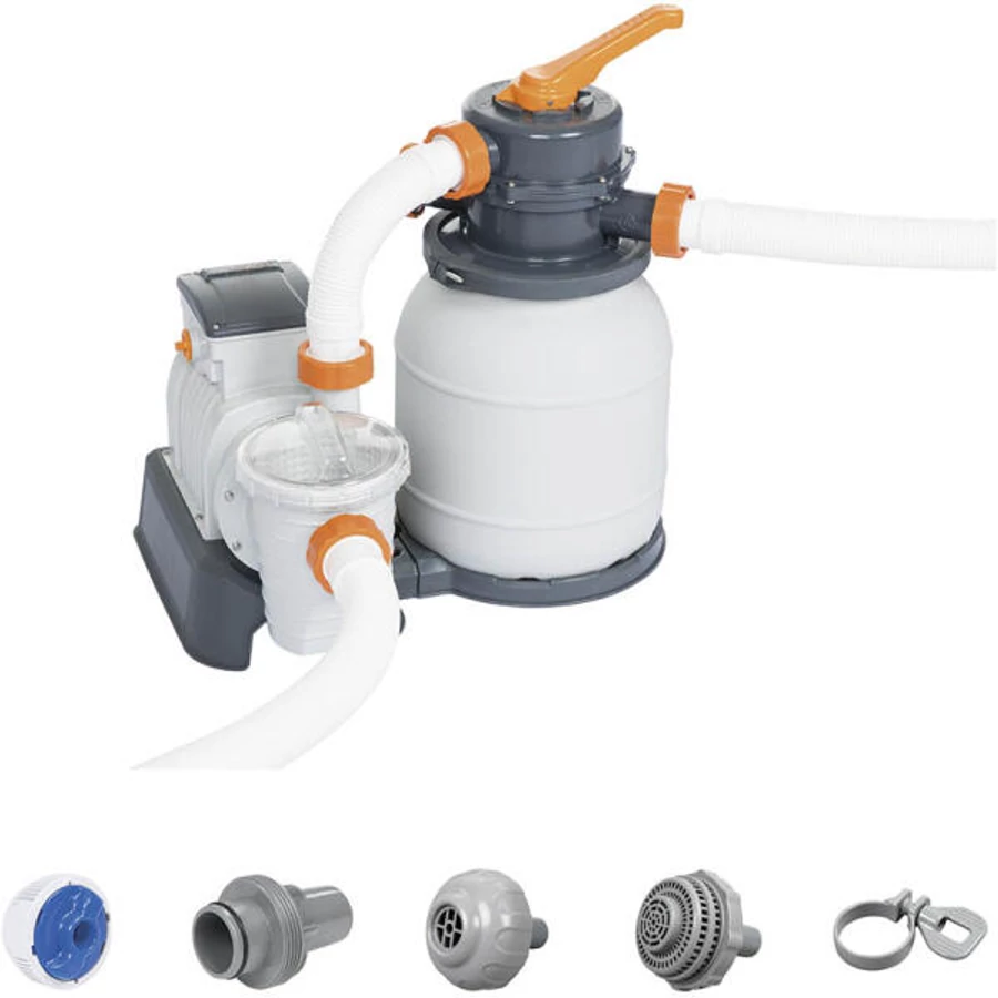 A Bestway homokszűrős vízforgatók hatékonyan tisztítják a medence vizét, eltávolítva a koszt, homokot és egyéb szennyeződéseket, miközben egyszerűbb karbantartást kínálnak, mint a papírszűrős modellek (a homok cseréje 2–3 évente elegendő). A beépített ChemConnect vegyszeradagoló stabil klórszintet biztosít a medencében, az előszűrő kosár pedig felfogja a nagyobb szennyeződéseket, védve a homokszűrőt és a csőrendszert.