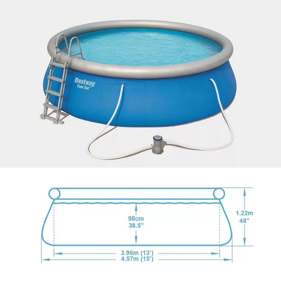A 457 cm átmérőjű és 122 cm magas kinti medence bőséges helyet biztosít akár 4–6 fő számára is, így tökéletes családi használatra, baráti összejövetelekhez vagy egyszerű kikapcsolódáshoz. A maximális vízmélység körülbelül 98 cm, ami kényelmes fürdőzést tesz lehetővé gyerekek és felnőttek számára egyaránt.
