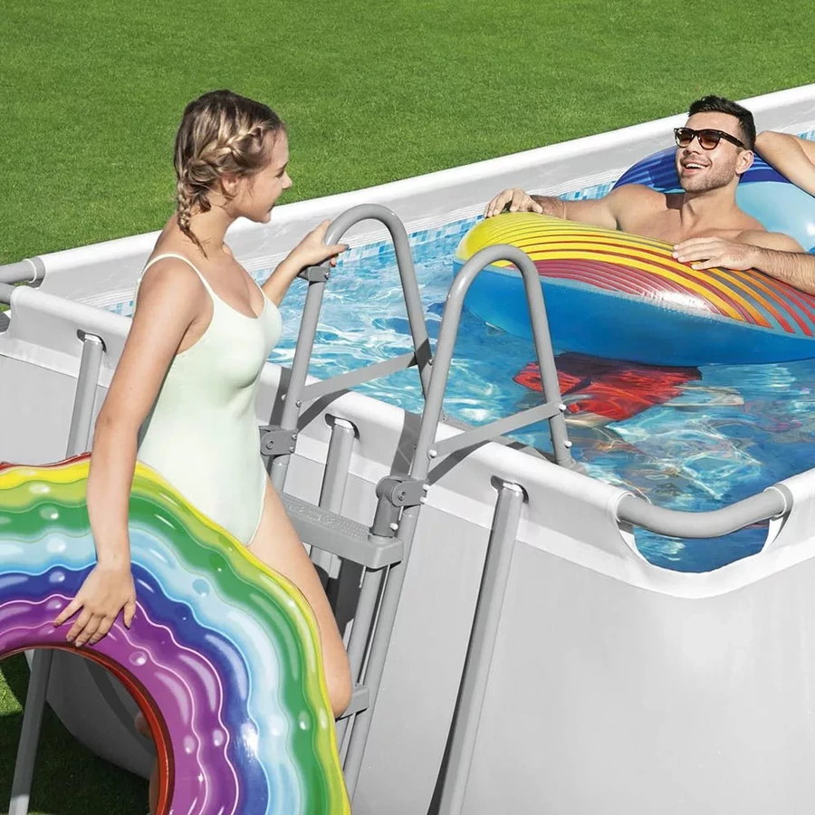 A fémvázas kialakításnak köszönhetően a medence rendkívül stabil, még teljes feltöltés esetén is. A szinterezett acél váz biztos tartást ad, így nem deformálódik használat közben. Több személy egyidejű használatára is alkalmas.