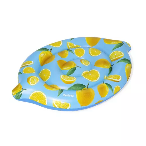 Egyszerre trendi és retró úszó matrac, valósághű citromos grafikával, pasztelkék alapszínben. Frissességet sugárzó matrac, ami még kellemesebbé teszi a nyári pihenést a parton vagy a vízen.