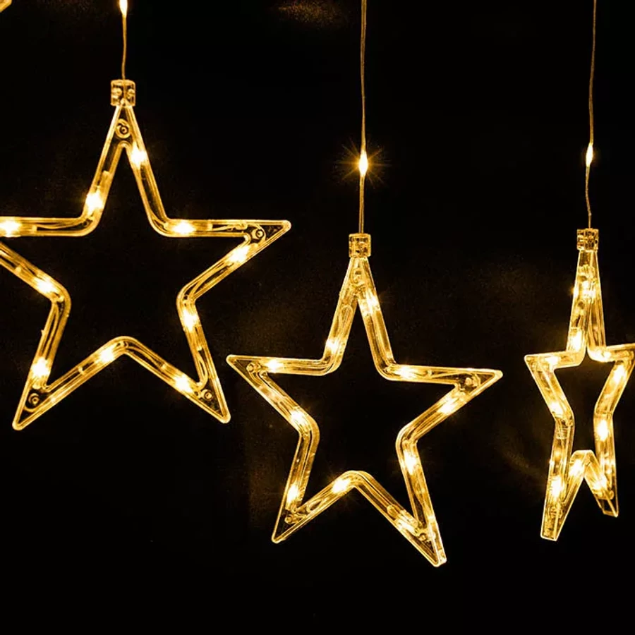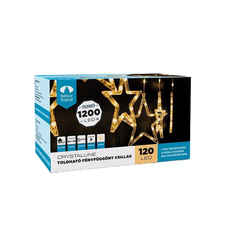 Crystalline toldható LED CSILLAG fényfüggöny, 120 x 80 cm, 120 db MELEG FEHÉR LED, átlátszó kábel