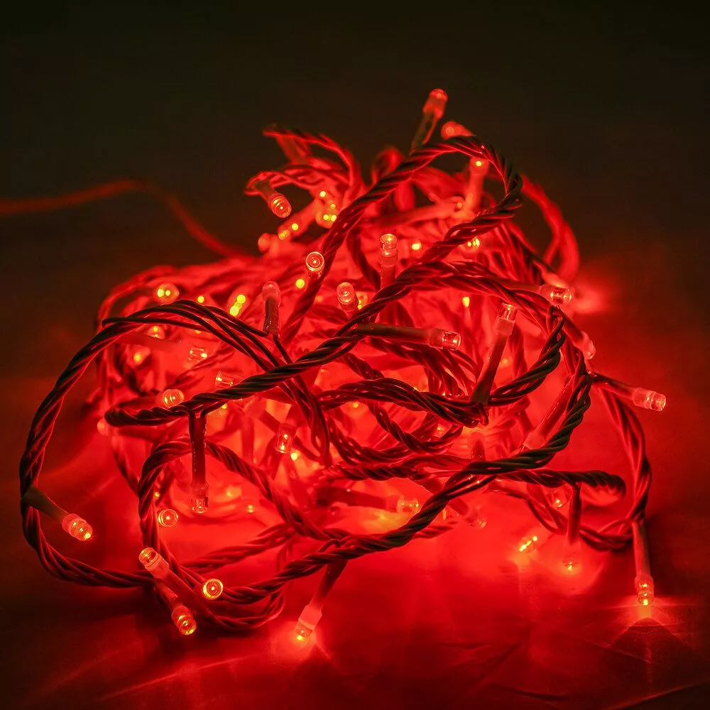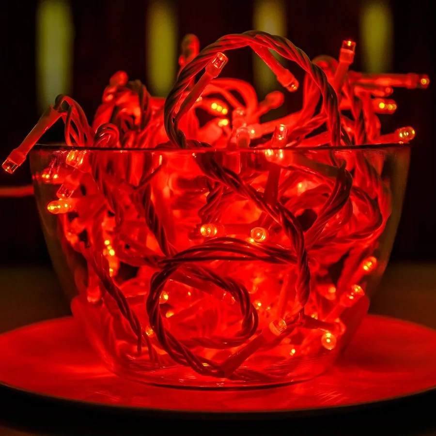 Dekortrend Kültéri vezérlős FEHÉR KÁBELES LED Fényfüzér 120 db / 6 m PIROS LED-del