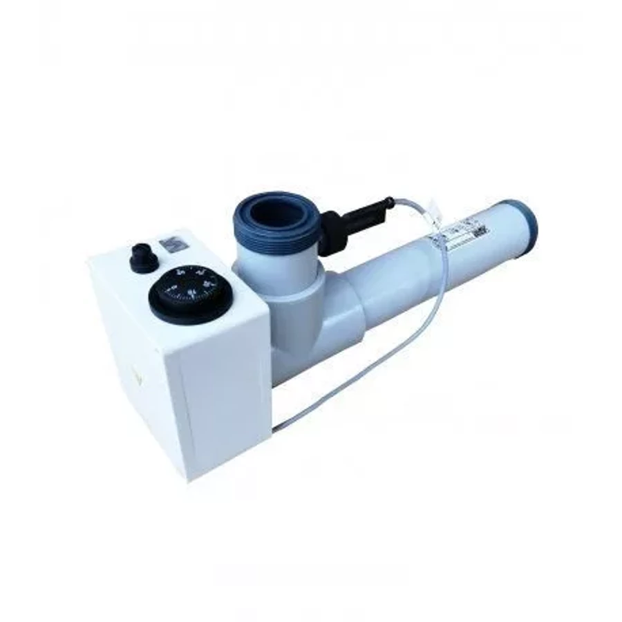 Elektromos fűtőpatron titánból. A készülék hőmérséklet szabályzóval, túlfűtés elleni védelemmel és biztonsági nyomáskapcsolóval van ellátva. Csőcsatlakozási méret: D50 mm ragasztós hollandi. Teljesítmény: 6 kW