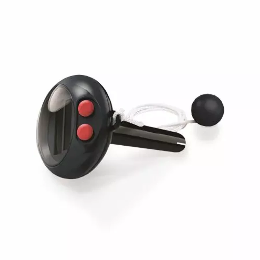 Napelemes működésű, úszóval és rugalmas zsinórral felszerelt hőmérő, amely a vízfelszín alatt lebeg, így megakadályozza a teljes elmerülést és könnyen kiemelhető. A digitális kijelző nagyítóval segíti az egyszerű leolvasást, Celsius vagy Fahrenheit fokban is mér. Automatikusan kikapcsol 150 másodperc használat után. Mérési tartomány: 0–50 °C. Anyaga tartós polimer.