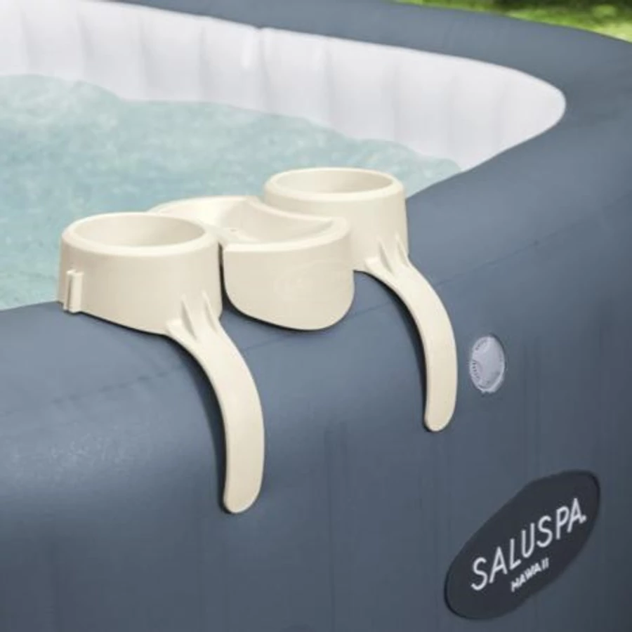 Két pohártartóval és egy tálcával ellátott italtartók tökéletesen illeszkednek a medence szélére, így többé nem kell nyújtózkodnia a bekészített nassolnivaló után. A tálcákon tárolhatja a telefonját vagy a távirányítót is. Az italtartók a tálcától elválaszthatók lehetővé téve, hogy az italok a kád mindkét végén tárolhatók legyenek és minden fürdőzőnek kézre essenek.