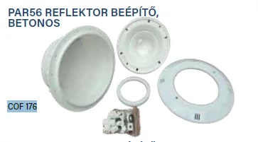 PAR56 betonos lámpa beépítő egy kiváló minőségű beépítő készlet betonmedencékhez készült PAR56 medencevilágító lámpatestekhez. Ez a tartós, strapabíró beépítő elem biztosítja a világítótest stabil és vízmentes rögzítését a medence falába építve. Ideális választás kültéri és beltéri beton medencék világításához, ahol fontos a hosszú élettartam, könnyű szerelhetőség és professzionális megjelenés. A készlet kompatibilis minden standard PAR56 méretű lámpatesttel, így könnyen bővíthető LED vagy halogén világító elemekkel.