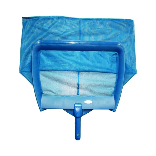 Teleszkópos rúdhoz csatlakoztatható, medence felszínén lebegő szennyeződések eltávolítására szolgáló eszköz.