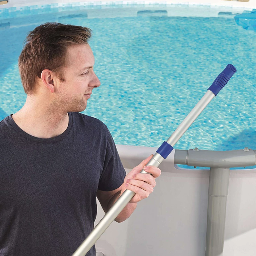 Állítható hosszúságú, teleszkópos alumínium nyél medencék tisztításához. A rúd segítségével könnyen elérhetők a medence sarkai, mélyebb részei és nehezen hozzáférhető felületei. Kompatibilis hálókkal, kefékkel és porszívófejekkel, így univerzális megoldás minden medencekarbantartó szetthez.